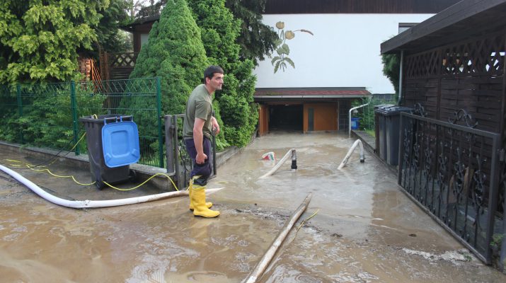 Eine Welle aus Wasser und Schlamm hatte sich während des Starkregens vom „Pulverturm“ her über den Langenbacher Weg, den Friedensweg und der Berthold- Schmidt Straße taleinwärts bewegt. Hilflos mussten die Bewohner von 5 Wohnhäusern zuschauen, wie die Keller und Garagen vollliefen. Ein Rentnerehepaar traf es besonders hart. Der Keller stand fast 1 Meter hoch unter Wasser, bis zu 20 Zentimeter davon reiner Schlamm. Ihr Pkw stand bis zur Frontscheibe im Wasser und hat nun nur noch Schrottwert.