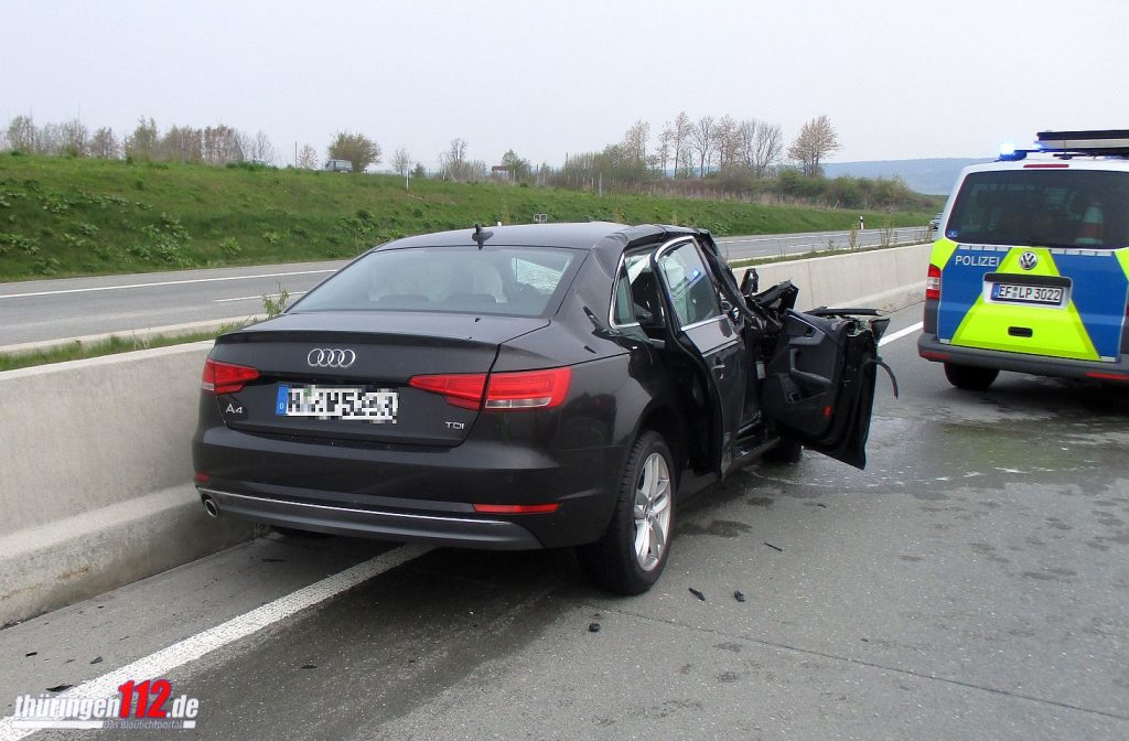 Riesen Glück war, wie die Bilder zeigen, dass der Mann allein im Auto saß. Er wurde bei dem Unfall schwer verletzt und kam mit dem Rettungshubschrauber ins Klinikum Jena. Es entstand ein Sachschaden von 28.000 Euro.