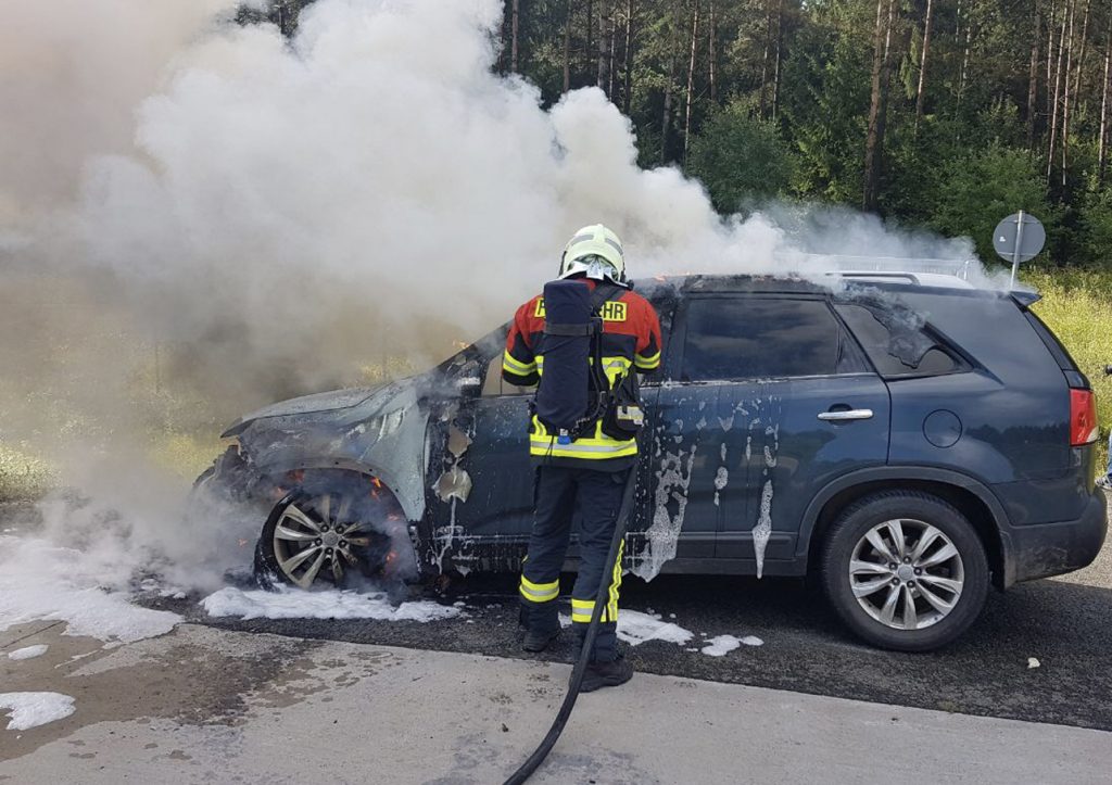 Der Fahrzeugführer konnte sein Auto noch rechtzeitig auf den Standstreifen abstellen. Er brachte sich und seinen Hund in Sicherheit, verletzt wurde niemand.