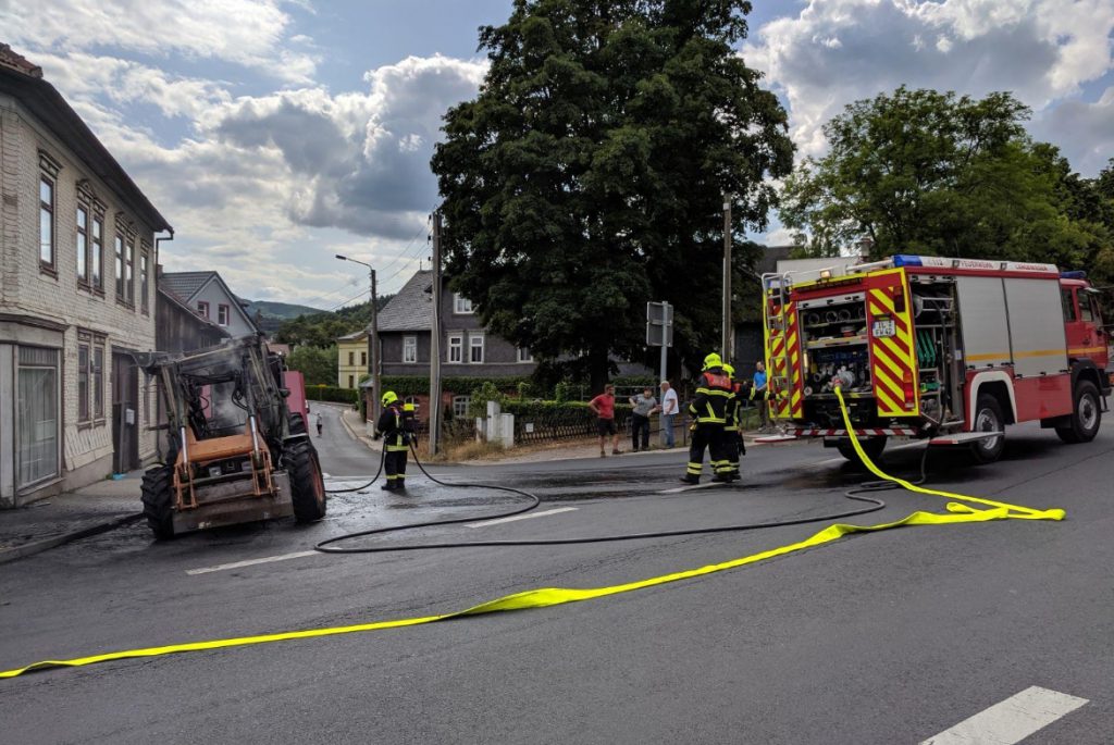 Ein 17-Jähriger fuhr gegen 15:30 Uhr mit einem Traktor durch den Ort, als dieser während der Fahrt plötzlich zu brennen begann. Das Feuer griff schnell auf den gesamten Traktor über.
