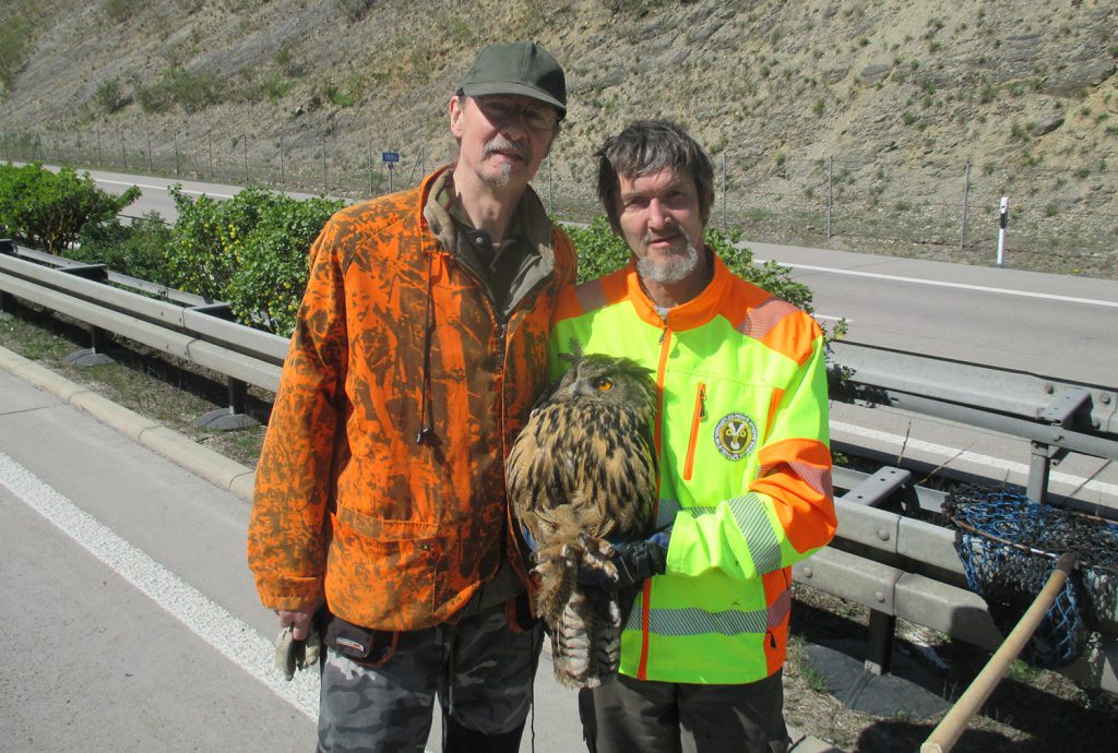 Zur Rettung des Tieres war eine kurzzeitige Sperrung der beiden Richtungsfahrbahnen notwendig. Der Uhu wurde in den Tierpark nach Suhl gebracht und wird dort versorgt.