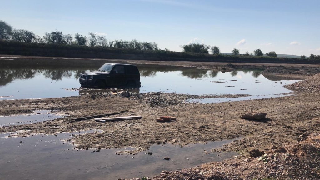 In der Folge testete der Fahranfänger seinen Daihatsu Feroza auf Herz und Nieren und fuhr durch den Kiessee. Da das Fahrzeug nicht schwimmtauglich war und der Untergrund im See nachgab, fuhr sich der PKW fest.