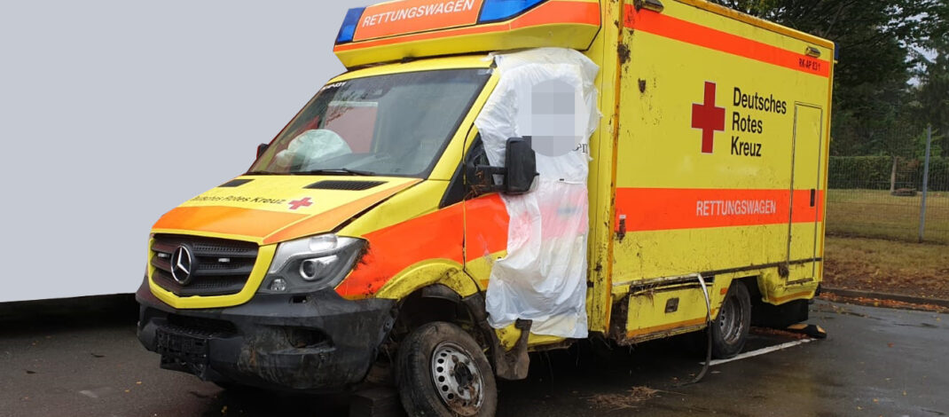 Rettungswagen landet zwischen Jena und Apolda auf der Seite: Fahrer wich Tier aus