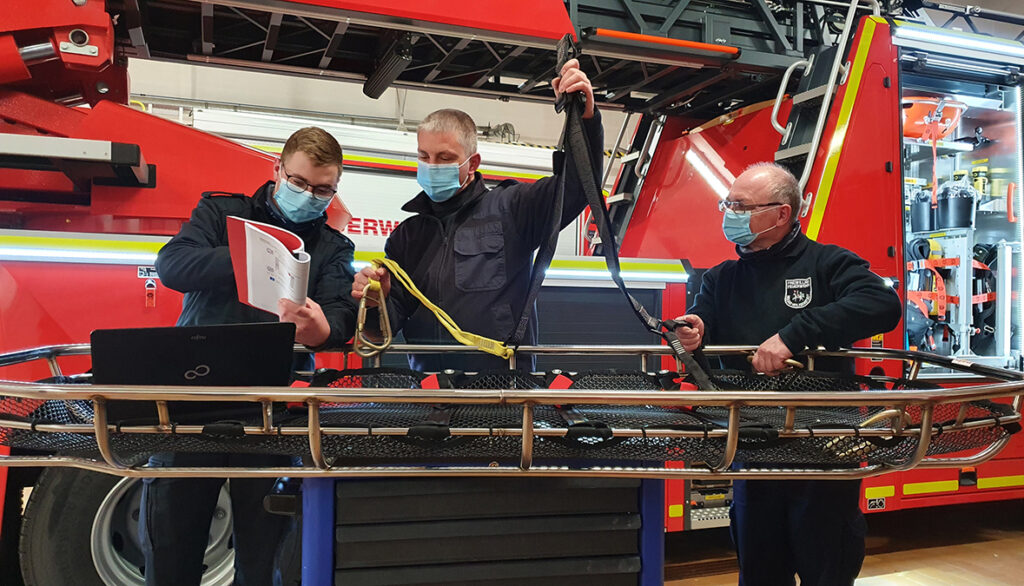 Nicht nur die für das Fahren und Bedienen der Drehleiter zuständigen Maschinisten müssen sich mit der Handhabung vertraut machen. Auch die übrigen Einsatzkräfte sollen ein intensives Training erhalten, damit im Ernstfall jeder Handgriff sitzt.