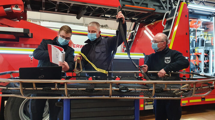 Nicht nur die für das Fahren und Bedienen der Drehleiter zuständigen Maschinisten müssen sich mit der Handhabung vertraut machen. Auch die übrigen Einsatzkräfte sollen ein intensives Training erhalten, damit im Ernstfall jeder Handgriff sitzt.