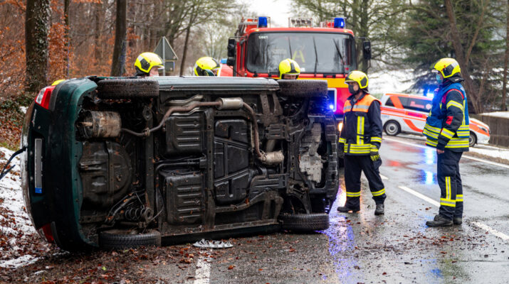Wieder Unfall auf B85 nahe Bad Berka – Auto kippt auf die Seite