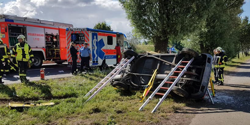 Am rechten Fahrbahnrand stieß er in der weiteren Folge gegen einen Baum und wurde schwer verletzt in seinem Wagen eingeklemmt. Kameraden der Wehren Andisleben, Straußfurt, Gebesee und Elxleben befreiten ihn mit schwerem Gerät.